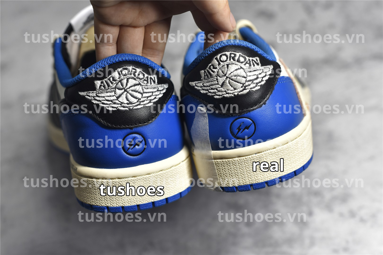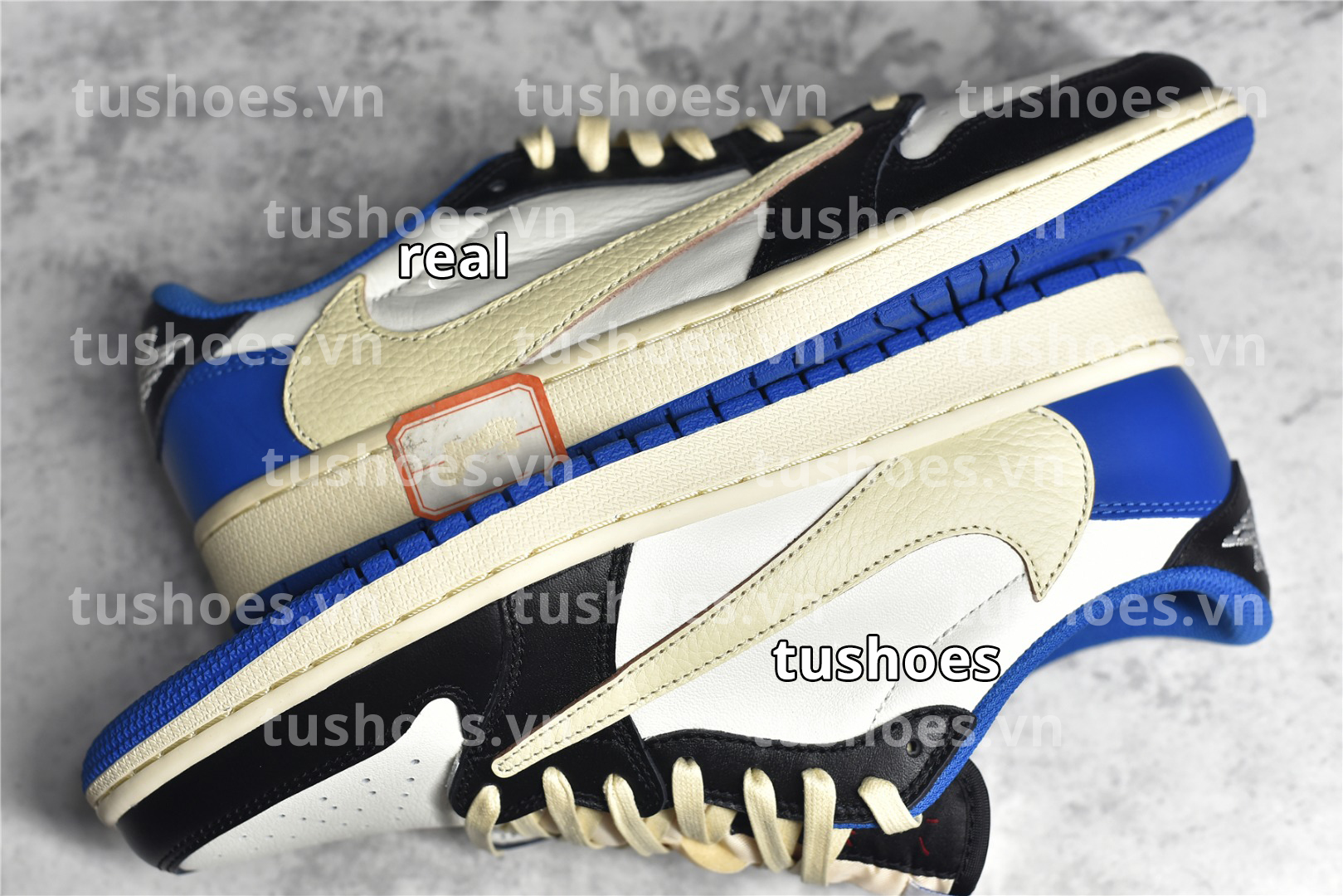 So Sánh Chất Lượng Tốt Nhất Chuẩn Tu Shoes giống 98% Real | FRAGMENT DESIGN X TRAVIS SCOTT X AIR JORDAN 1 RETRO LOW